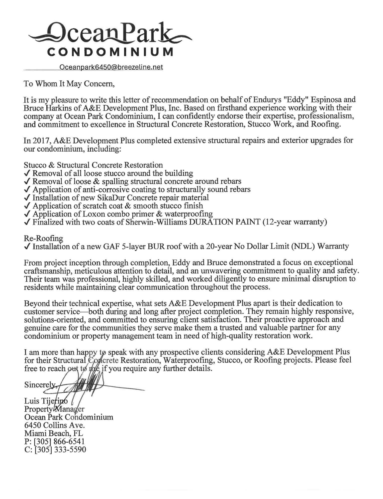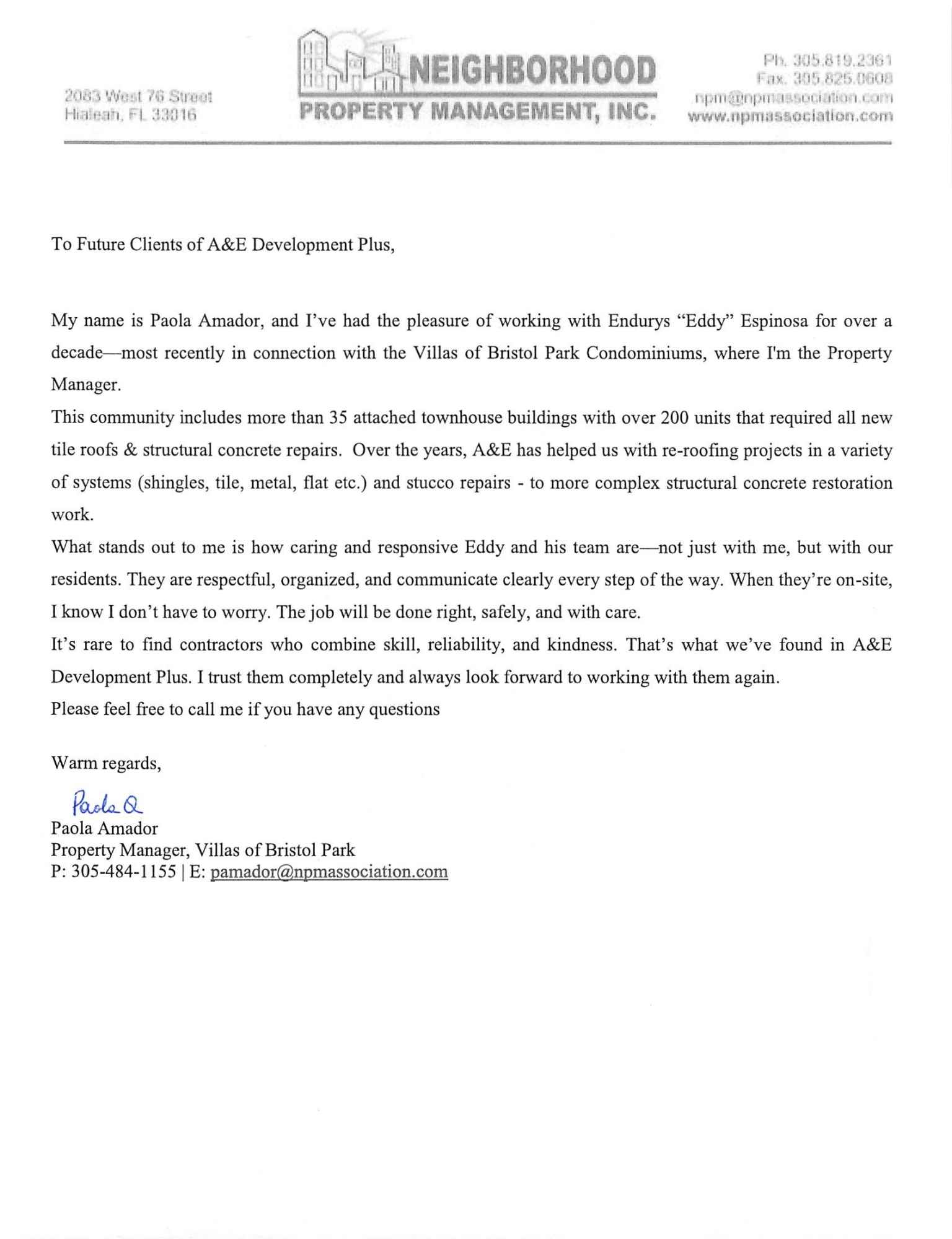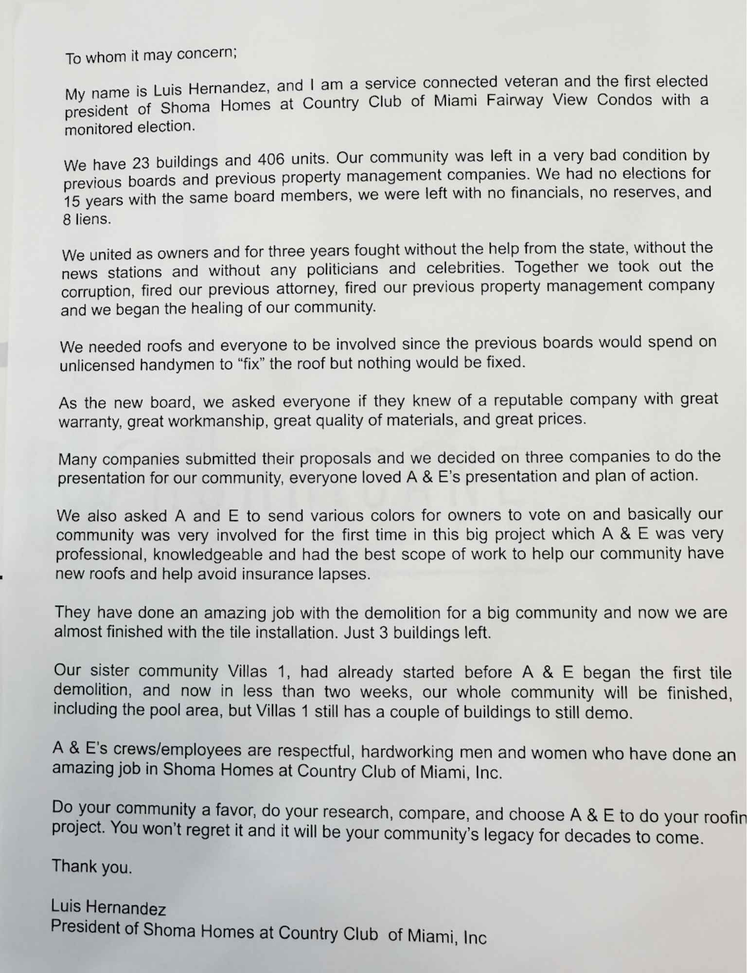 8600 Commerce Way Miami Lakes , Florida Project Manager Rep of HOA Hernando Macias